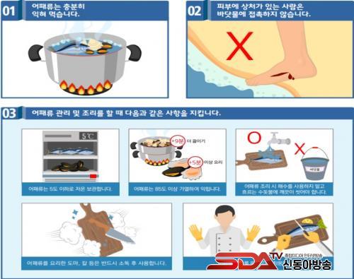 ºñºê¸®¿ÀÆÐÇ÷Áõ ¿¹¹æÀ» À§Çؼ´Â ÇǺο¡ »óó°¡ ÀÖ´Â »ç¶÷Àº ¹Ù´å¹°¿¡ Á¢ÃËÇÏÁö ¸»¾Æ¾ß Çϸç, ¾îÆÐ·ù´Â ÃæºÐÈ÷ ÀÍÇô¼ ¸Ô¾î¾ß ÇÑ´Ù. ¶ÇÇÑ ¾îÆÐ·ù º¸°ü ½Ã 5¡É ÀÌÇÏ·Î À¯ÁöÇϰí, ¾îÆÐ·ù ¿ä¸® ½Ã »ç¿ëÇÑ µµ¸¶¿Í Ä® µîÀº ¹Ýµå½Ã ¼Òµ¶ÇÏ´Â µî ¿¹¹æ¼öÄ¢À» ÁöÄÑ¾ß ÇÑ´Ù.