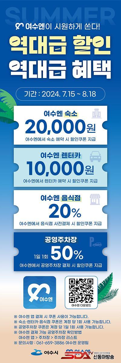 À̹ø Çà»ç·Î ÀÌ¿ëÀÚ´Â ¾ÛÀ» ÅëÇØ »çÀü ¿¹¾à ½Ã °áÁ¦Ã¢¿¡¼ ÀÚµ¿ ¹ß±ÞµÈ ÄíÆùÀ» »ç¿ëÇÏ¿© Áï½Ã ÇÒÀιÞÀ» ¼ö ÀÖ´Ù. ÇÒÀÎ ±Ý¾×Àº ¼÷¼Ò 2¸¸ ¿ø, ·»ÅÍÄ« 1¸¸ ¿ø, À½½ÄÁ¡ 20%, °ø¿µÁÖÂ÷Àå ¿ä±Ý 50%ÀÌ´Ù.