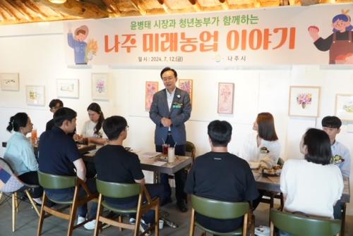 ³ªÁÖ½ÃÀå À±º´Å´ ¡°³ªÁÖ ¹Ì·¡³ó¾÷ÀÇ ¿ª±ºµé°ú ÇÔ²² ³ó¾÷ ¹ßÀü¹æ¾È¿¡ ´ëÇØ ÀǰßÀ» ³ª´©°Ô µÅ ¶æ±í´Ù¡±¸ç ¡°¾ÕÀ¸·Îµµ û³â³ó¾÷ÀΰúÀÇ ¼ÒÅëÀ» °­È­ÇÏ°í ½ÇÁúÀûÀÎ Áö¿ø Á¤Ã¥À» ¸¶·ÃÇÏ´Â µ¥ ÃÖ¼±À» ´ÙÇϰڴ١±°í ¸»Çß´Ù.