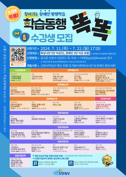 ¡®ÇнÀµ¿Çà ¶È¶È¡¯Àº È­¼º½Ã °ÅÁÖ Àå¾ÖÀÎ 3ÀÎ ÀÌ»óÀ» Æ÷ÇÔÇÑ ÃÑ 5ÀÎ ÀÌ»óÀÇ ½Ã¹ÎÀÌ Á÷Á¢ ÇнÀ¸ðÀÓÀ» ±¸¼ºÇØ ¼ö°­À» Èñ¸ÁÇÏ´Â °­ÁÂ, ½Ã°£, Àå¼Ò¸¦ Á¤ÇØ ½ÅûÇÏ´Â ÇнÀÀÚ Áß½ÉÀÇ Ã£¾Æ°¡´Â Æò»ýÇнÀ ÇÁ·Î±×·¥ÀÌ´Ù.