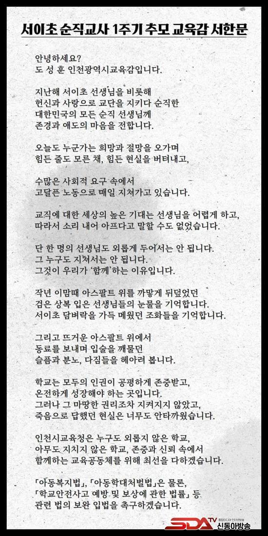 17ÀÏ ¿ÀÀü ÀÎõ½Ã±³À°Ã»¿¡ ¸¶·ÃµÈ Ãß¸ð°ø°£À» ãÀº µµ ±³À°°¨Àº ¡°Ã¼ÇèȰµ¿ µî ±³À°°úÁ¤ ¼Ó¿¡¼ ¹ß»ýÇÑ »ç°í¿¡ ´ëÇØ °íÀdzª Áß´ëÇÑ °ú½ÇÀÌ ¾øÀ» °æ¿ì ±³»ç°¡ ¹ýÀû Ã¥ÀÓÀ¸·ÎºÎÅÍ º¸È£¹ÞÀ» ¼ö ÀÖ´Â ÀåÄ¡¸¦ ¸¶·ÃÇØ¾ß ÇÑ´Ù¡±¸é¼ ¡°¼ÀÌÃÊ ±³»çÀÇ ¾ÈŸ±î¿î Á×À½°ú ±³±ÇÀÌ ¹«³ÊÁö´Â °¡½¿ ¾ÆÇ »ç·ÊµéÀ» Á¢Çϸç, ±³±ÇÀÌ Á¸ÁßµÇÁö ¾ÊÀ¸¸é ¾î¶² ±³À°µµ Á¦´ë·Î ÀÌ·ïÁú ¼ö ¾ø´Ù´Â ¼±»ý´ÔµéÀÇ ¸¶À½¿¡ ±íÀÌ °ø°¨ÇÑ´Ù"°í ¹àÇû´Ù.