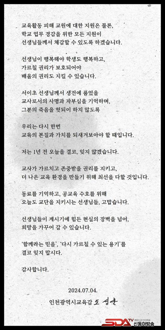 ±×·¯¸é¼ "¸ðµç ±³»ç°¡ ¾ÈÀüÇϰí Á¸Áß¹ÞÀ¸¸ç ±³À°¿¡ Àü³äÇÒ ¼ö ÀÖ´Â Çб³ ÇöÀåÀ» ¸¸µé±â À§ÇØ ¼ÀÌÃÊ ±³»çÀÇ Èñ»ýÀ» ÀØÁö ¾Ê°Ú´Ù"°í ¸»Çß´Ù.