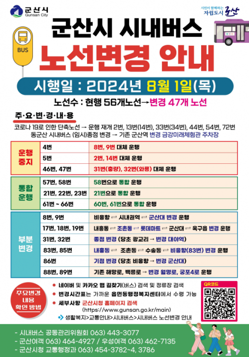 [½Åµ¿¾Æ¹æ¼Û=À̺´½Ä±âÀÚ] ±º»ê½Ã(½ÃÀå °­ÀÓÁØ)´Â ¿À´Â 8¿ù 1ÀϺÎÅÍ ÇöÀç ½Ã³»¹ö½º ³ë¼±ÀÇ ÀϺθ¦ Á¶Á¤ º¯°æÇÏ¿© ¿îÇàÇÑ´Ù°í ¹àÇû´Ù.