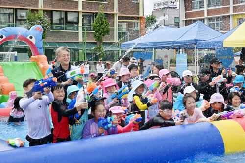 ¼±¸ ÈÁ¤1µ¿Àº 26~27ÀÏ ±¤ÁÖ¼ÃʵîÇб³ ¿îµ¿Àå¿¡¼ ¡®Á¦2ȸ ¿ì¸®µ¿³× ½æ¸Ó ǮIJ½º¡¯¸¦ °³ÃÖÇÑ´Ù. ¼±¸´Â Çб³ ¿îµ¿Àå¿¡ ´ëÇü‧ÁßÇü ¿öÅͽ½¶óÀÌµå ¹× ¼ö¿µÀåÀ» ¼³Ä¡ÇÏ°í ¹°ÃÑ´ëÀü, ¸¶¼ú°ø¿¬, ´í½ºÅ¸ÀÓ µî ÁÖ¹ÎÀÌ ÇÔ²² Âü¿©Çϰí Áñ±â´Â ÇÁ·Î±×·¥À» ¿î¿µÇÑ´Ù. ÈÁ¤1µ¿Àº Áö³ÇØ ÀÌ Çà»ç¸¦ óÀ½ ±âÈ¹ÇØ ¾ÆÀ̵鿡°Ô ¾ÈÀüÇϰí ÄèÀûÇÑ ³îÀÌȯ°æÀ» Á¦°øÇϰí Çб³ ¿îµ¿Àå °øÀ¯¸¦ ÅëÇØ ¸¶À»°ú Çб³ °£ »ó»ý‧Çù·ÂÀÇ ÀåÀ» ¸¶·ÃÇߴٴ ȣÆòÀ» ¹Þ¾Ò´Ù.