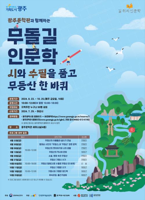 [½Åµ¿¾Æ¹æ¼Û=±èÀçÂù±âÀÚ] ±¤ÁÖ¹®ÇаüÀº ¡®¹«µ¹±æ Àι®ÇÐ-½Ã¿Í ¼öÇÊÀ» ǰ°í ¹«µî»ê ÇѹÙÄû¡¯¸¦ ÁÖÁ¦·Î ¡®2024³â ±æÀ§ÀÇ Àι®ÇС¯À» 8¿ù 23ÀϺÎÅÍ 10¿ù 25ÀϱîÁö 10ÁÖ°£ ÁøÇàÇÑ´Ù.
