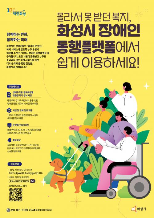 [½Åµ¿¾Æ¹æ¼Û=ÀÌÀçö ±âÀÚ] È­¼º½Ã Àå¾ÖÀÎ µ¿ÇàÇ÷§ÆûÀº È­¼º½Ã°¡ °æ±âµµ ³» ÁöÀÚü ÃÖÃÊ·Î ±¸ÃàÇÑ Àå¾ÖÀÎÀ» À§ÇÑ Á¾ÇÕ º¹Áö Á¤º¸ Á¦°ø ¿Â¶óÀÎ Ç÷§ÆûÀ¸·Î, Áß¾ÓºÎ󡤰æ±âµµ¡¤È­¼º½Ã µî °ø°ø ¿µ¿ª°ú ¹Î°£ ¿µ¿ª¿¡¼­ Á¦°øÇÏ´Â 360¿© °³ Àå¾ÖÀÎ °ü·Ã Á¤Ã¥¡¤¼­ºñ½º¸¦ ÃѸÁ¶óÇØ ¾È³»ÇÑ´Ù.