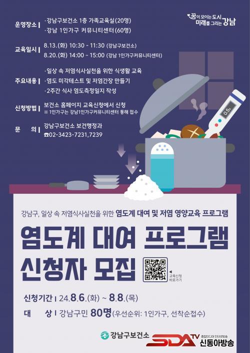 Á¶¼º¸í °­³²±¸Ã»ÀåÀº ¡°Áý¿¡¼­ ¸Ô´Â ±¹, Âî°³ µîÀÇ ¿°µµ¸¦ Á÷Á¢ È®ÀÎÇÔÀ¸·Î½á Àú¿° ½Ç»ýȰÀ» ½ÇõÇÒ ¼ö Àֱ⸦ ¹Ù¶õ´Ù¡±¸ç ¡°¾ÕÀ¸·Îµµ ±¸¹ÎÀÇ ¿µ¾ç°ü¸® ´É·ÂÀ» Çâ»óÇÒ ¼ö ÀÖ´Â ¹Ù¸¥ ½Ä»ýȰ ÇÁ·Î±×·¥À» ¿î¿µÇϰڴ١±°í ¹àÇû´Ù.