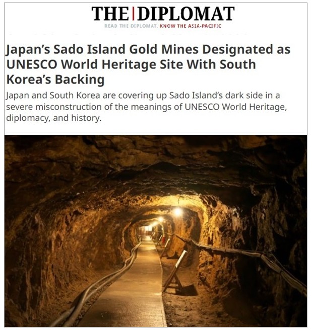 ÀÌ¿¡ ´ëÇØ ÇöÁö ½Ã°¢ 7ÀÏ Ú¸ ¿Ü±³Àü¹®Áö <µðÇÃ·Î¸ÅÆ®>´Â "Çѱ¹ÀÇ ÁöÁö ¾Æ·¡ À¯³×½ºÄÚ ¼¼°è¹®ÈÀ¯»êÀ¸·Î ÁöÁ¤µÈ ÀϺ»ÀÇ »çµµ±¤»ê(Japan's Sado Island Gold Mines Designated as UNESCO World Heritage Site With South Korea's Backing)"À̶ó´Â Á¦¸ñÀÇ ±â»ç¿¡¼,