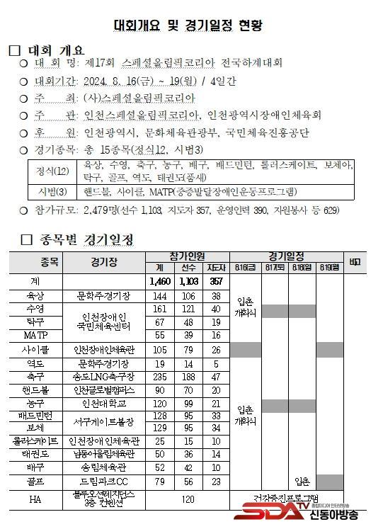 À̹ø ´ëȸ¿¡´Â ÃÑ 2,479¸íÀÌ Âü°¡Çϸç, ÀÎõ ¹®Çаæ±âÀå µî 10¿© °³ °æ±âÀå¿¡¼ 15°³ Á¾¸ñ(Á¤½Ä 12°³, ½Ã¹ü 3°³)ÀÇ °æ±â°¡ ÆîÃÄÁø´Ù.