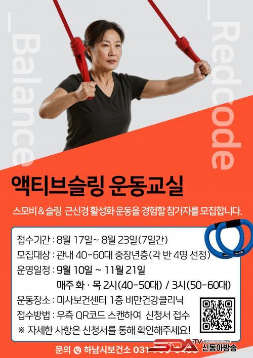 ¾×Ƽºê½½¸µ ¿îµ¿±³½ÇÀº ½º¸ðºñ¿Í ½½¸µ ¿îµ¿±â±¸¸¦ Ȱ¿ëÇØ ¸öÀÇ ¿îµ¿°¨°¢À» Ű¿ì°í ±ÙÀ°°ú ½Å°æ°è¸¦ Ȱ¼ºÈÇÏ´Â ¿îµ¿ ÇÁ·Î±×·¥ÀÌ´Ù. ¿À´Â 9¿ù 10ÀϺÎÅÍ 10ÁÖ°£ ¸ÅÁÖ È¡¤¸ñ¿äÀÏ ¡ã4050 ¾×Ƽºê½½¸µ¹Ý(40~50´ë Âü¿© °¡´É¹Ý, 4¸í ¸ðÁý) ¿ÀÈÄ 2½Ã ¡ã5060 ¾×Ƽºê½½¸µ¹Ý(50~60´ë Âü¿© °¡´É¹Ý, 4¸í ¸ðÁý) ¿ÀÈÄ 3½Ã µî 2°³¹ÝÀ¸·Î ³ª´² ¿î¿µÇÒ °èȹÀÌ´Ù.
