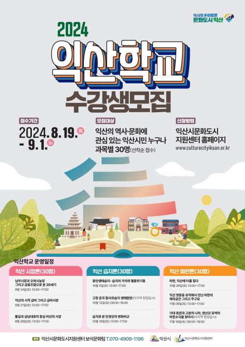 [½Åµ¿¾Æ¹æ¼Û=À̺´½Ä±âÀÚ] ÀÍ»ê½Ã¿Í ¹®È­µµ½ÃÁö¿ø¼¾ÅÍ´Â Áö¿ª ¿ª»ç¡¤¹®È­ Àü¹®°¡ ¾ç¼ºÀ» À§ÇÑ '2024 ÀÍ»êÇÐ ½Ã¹Î¹®È­Çб³'(ÀÌÇÏ 'ÀÍ»êÇб³') ¼ö°­»ýÀ» 9¿ù 1ÀϱîÁö ¸ðÁýÇÑ´Ù.
