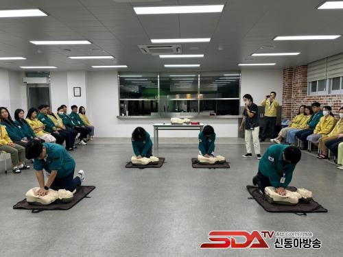 Á÷¿øµéÀº ¿ÀÈÄ 2½Ã ¹Î¹æ°ø °ø½À°æº¸ »çÀÌ·»ÀÌ ¿ï¸®ÀÚ, ºñ»ó°è´Ü µîÀ» ÅëÇØ ÁöÁ¤ ´ëÇǼҷΠ´ëÇÇÇß´Ù. ´ëÇÇ¿Í µ¿½Ã¿¡ ºñ»ó½Ã Çൿ ¿ä·É ±³À°À» ½Ç½ÃÇϰí, »óȲ Á¾·á ÈÄ¿¡´Â ½ÉÆó¼Ò»ý¼ú Á߿伺 ÇнÀ ¹× ÀÚµ¿½ÉÀåÃæ°Ý±â(AED) ½Ç½À µîÀ» ÁøÇàÇß´Ù.