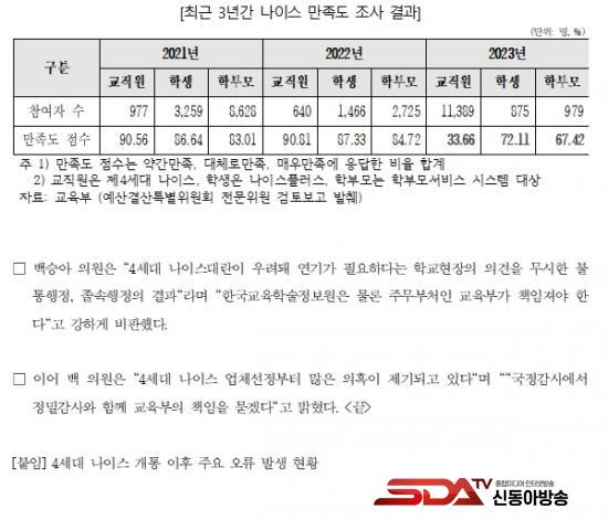 ¡à ±¹È¸ ±³À°À§¿øÈ¸ ¹é½Â¾Æ ÀÇ¿ø(´õºÒ¾î¹ÎÁÖ´ç)ÀÌ °ø°³ÇÑ ±³À°ºÎ°¡ ÀÛ³â 7¿ù 31ÀϺÎÅÍ 9¿ù 15ÀϱîÁö ½Ç½ÃÇÑ 'Çѱ¹±³À°ÇмúÁ¤º¸¿ø ³ªÀ̽º °¨»ç °á°ú ¹× óºÐ'¿¡ µû¸£¸é Á¹¼Ó°³Åë ³ªÀ̽º´ë¶õ¿¡ ÃÑüÀû ºÎ½ÇÀÌ µå·¯³µ´Ù.