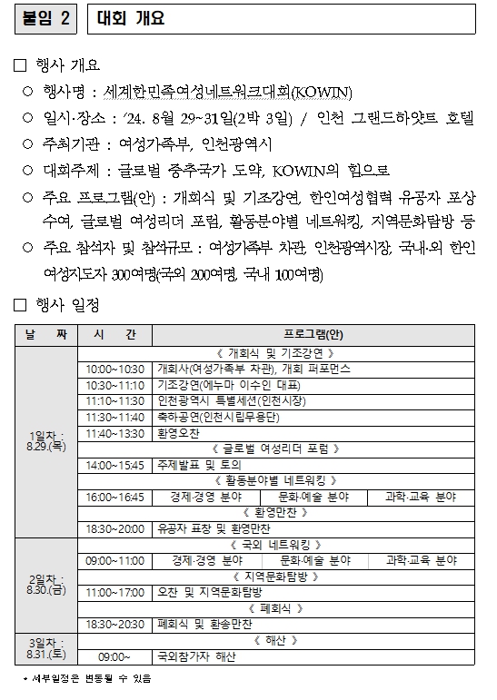 À¯Á¤º¹ ÀÎõ½ÃÀåÀº¡®À̹ø ´ëȸ°¡ ÀÎõÀÇ ´ëÇѹα¹ À̹λç Ãâ¹ßÁö·Î¼ÀÇ ¿ª»çÀû Àǹ̸¦ µÇ»õ±â°í, ´ëÇѹα¹ÀÌ ±Û·Î¹ú ÁßÃß±¹°¡·Î µµ¾àÇÏ´Â ÇöÀç¿Í ¹Ì·¡¸¦ Àü¸ÁÇÏ´Â Áß¿äÇÑ ÀÚ¸®°¡ µÇ±æ ¹Ù¶õ´Ù¡¯¸ç ¡®¼¼°è °¢Áö¿¡¼ ¿À½Å ÇÑÀÎ ¿©¼º ¸®´õµé°ú ÇÔ²² ´ëÇѹα¹ÀÇ ¹ßÀü°ú ÇѹÎÁ·ÀÇ ¹Ì·¡¸¦ ³íÀÇÇÒ ¼ö ÀÖ°Ô µÈ °ÍÀ» ¸Å¿ì ±â»Ú°Ô »ý°¢ÇÑ´Ù¡¯¶ó°í ¹àÇû´Ù.