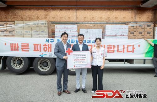 [½Åµ¿¾Æ¹æ¼Û ÀÎõ= À±¹Î½Ä±âÀÚ] ©ÅÀÎõ±¤¿ª½Ã¼±¸ Áß¼Ò±â¾÷°æ¿µÀÚÇùÀÇȸ(ȸÀå ¿ì¼º¸í ¢ß¹ÝÂù´ÜÁö ´ëÇ¥)´Â Áö³ 8¿ù 1ÀÏ ÁöÇÏÁÖÂ÷Àå ÈÀç·Î ÀÎÇØ ¾î·Á¿òÀ» °Þ°í ÀÖ´Â ÇÇÇØ ¾ÆÆÄÆ® ÁֹεéÀ» À§ÇØ ¡ã¾×»ó¼¼Á¦, ¡ãºñ´ÒÀå°©, ¡ãû¼Ò¿ë ¹°Æ¼½´ µî Áö¿ø¹°Ç°, ¡ã±âºÎ±Ý 3¹é¸¸¿ø ¹× ȸÀå ÀÚ»çÀÇ ¹ÝÂù¸ðµÒ 400¼¼Æ®, ¡ã¹°Ç°Æ÷ÀåÀÚÀç, ¡ãÀη°ú ¹°Ç°À̵¿À» À§ÇÑ º¼º¸ À®¹Ùµð Â÷·® Áö¿ø µîÀ» Æ÷ÇÔÇÏ¿© ÃÑ 2õ¸¸¿ø »ó´çÀÇ ¿ÂÁ¤À» Àü´ÞÇß´Ù.