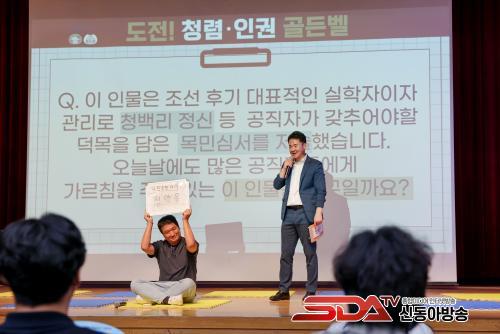 ƯÈ÷ ¸¶Áö¸· °ñµçº§ ¹®Á¦´Â µµºÀ±¸Ã»ÀåÀÌ Á÷Á¢ ÃâÁ¦ÇØ Àǹ̸¦ ´õÇß´Ù. û¹é¸® Á¤½ÅÀ» ³Î¸® ¾Ë¸° ¿ª»çÀû Àι° Á¤¾à¿ë¿¡ ´ëÇÑ ¹®Á¦·Î, Æò¼Ò ±¸Ã»ÀåÀÌ Á÷¿øµé¿¡°Ô ÀüÇϰíÀÚ Çϴ û·Å°ú ÀαÇÀÇ °¡Ä¡¸¦ °Á¶ÇÏ´Â ¸Þ½ÃÁö°¡ ´ã°ÜÀÖ¾ú´Ù.