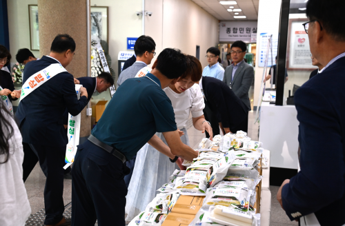 Çà»ç¿¡ Âü¿©ÇÑ ÃÖ°æ½Ä ³²¿ø½ÃÀå, ¿À¿µ¼® ³óÇù ³²¿ø½ÃÁöºÎÀå, ¹Ú±â¿ ³²¿ø³óÇùÁ¶ÇÕÀå, ±è¿µ±Ô ÃáÇâ°ñ³óÇùÁ¶ÇÕÀå, Á¤´ëȯ Áö¸®»ê³óÇùÁ¶ÇÕÀå, ¿À¿ë´ã ¿îºÀ³óÇùÀå µîÀº ½Ãû Á÷¿ø°ú ¹Î¿øÀÎÀ» ´ë»óÀ¸·Î °¡·¡¶±°ú È«º¸¿ë ½Ò 500gÀ» ³ª´²ÁÖ¸é¼ ¿Ã¹Ù¸¥ ½Ä½À°ü Çü¼ºÀ» ÅëÇÑ °Ç° À¯Áö¸¦ À§ÇØ ¾ÆÄ§¹ä ¸Ô±â ¿îµ¿¿¡ ½Ã¹ÎÀÌ Àû±Ø µ¿ÂüÇØ ÁÙ °ÍÀ» È£¼ÒÇÏ¿´´Ù.