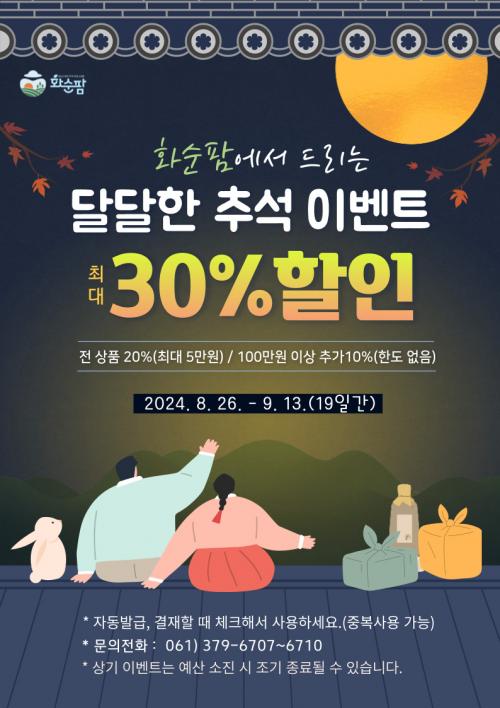 ÇöÀç ȼøÆÊ¿¡¼´Â 9¿ù 13ÀϱîÁö¡¸Ãß¼®¸ÂÀÌ ´Þ´Þ(êÅ)ÇÑ¡¹ À̺¥Æ®¸¦ ÁøÇàÇϰí ÀÖÀ¸¸ç, Àü »óǰ 20% ÇÒÀÎ ÄíÆù(ÃÖ´ë 5¸¸ ¿ø)°ú 100¸¸ ¿ø ÀÌ»ó ±¸¸Å ½Ã Ãß°¡ 10% ÇÒÀÎ ÄíÆùÀ» Áö±ÞÇϰí, ½Å±Ôȸ¿ø¿¡°Ô´Â 2,000¿ø ÇÒÀÎ ÄíÆùÀ» Ãß°¡·Î Áö±ÞÇÑ´Ù.