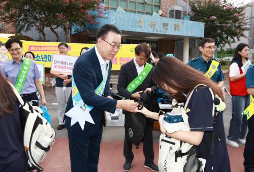 À̸¥ ¾ÆÄ§ µî±·±æ Çлýµé¿¡°Ô ±³Åë¾ÈÀü°ú Çб³Æø·Â ¿¹¹æÀÇ Á߿伺À» °Á¶Çϰí, ¿äÁò »çȸÀûÀ¸·Î À̽´ÈµÈ µöÆäÀÌÅ©¿¡ ´ëÇÑ ¿¹¹æ¹ý ¾È³» µî û¼Ò³âµéÀÌ ¾ÈÀüÇÑ »çȸ¿¡¼ ¼ºÀåÇÒ ¼ö ÀÖµµ·Ï °¢ ±â°ü‧´Üü´Â ¹°·Ð û¼Ò³âµéÀÌ ÀÚ¹ßÀûÀ¸·Î Ä·ÆäÀΠȰµ¿À» ÆîÃÄ È¼ø±ºÀÇ ¾Æµ¿Ä£Èµµ½Ã Á¶¼º¿¡ ¾ÕÀå¼¹´Ù.