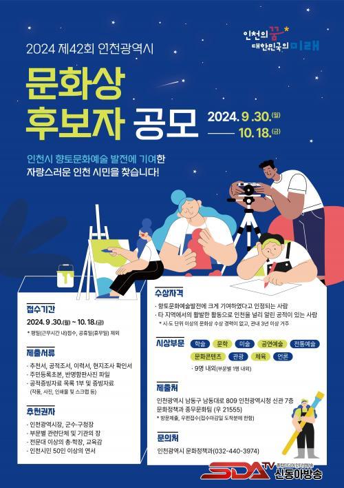 ÀÎõ±¤¿ª½Ã´Â 9¿ù 30ÀÏ ~ 10¿ù 18ÀϱîÁö Á¦42ȸ ¹®È­»ó Èĺ¸ÀÚ¸¦ °ø¸ðÇÑ´Ù°í ¹àÇû´Ù.