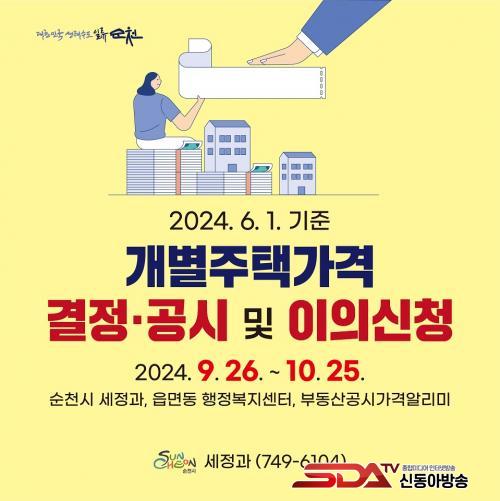 °³º°ÁÖÅð¡°ÝÀº ¼øÃµ½Ã ´©¸®Áý(https://www.suncheon.go.kr)°ú ºÎµ¿»ê°ø½Ã°¡°Ý¾Ë¸®¹Ì(https://www.realtyprice.kr)¸¦ ÅëÇØ ¿­¶÷ °¡´ÉÇϰí, °¡°Ý¿¡ ÀÌÀǰ¡ ÀÖ´Â ¼ÒÀ¯ÀÚ µîÀº 10¿ù 25ÀϱîÁö ¼øÃµ½Ã ¼¼Á¤°ú ¶Ç´Â °¢ À¾¸éµ¿ ÇàÁ¤º¹Áö¼¾ÅÍ¿¡ ÀÌÀÇ ½Åû¼­¸¦ Á¦ÃâÇÏ¸é µÈ´Ù.