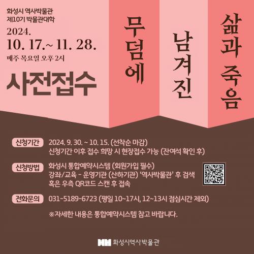 °­ÀÇ´Â È­¼º½Ã ¿ª»ç¹Ú¹°°ü 1Ãþ °­´ç¿¡¼­ ¿­¸®¸ç, Áö¿ª ÁÖ¹ÎÀº ¹°·Ð °í°íÇÐ ¹× ¿ª»ç¿¡ °ü½ÉÀÌ ÀÖ´Â ½Ã¹ÎÀ̶ó¸é ´©±¸³ª Âü¿©ÇÒ ¼ö ÀÖ´Ù. ¼ö°­ ÀοøÀº ÃÑ 40¸íÀÌ¸ç ¼ö°­ ½ÅûÀº È­¼º½Ã ÅëÇÕ¿¹¾à½Ã½ºÅÛ¿¡¼­ ¼±Âø¼øÀ¸·Î ÁøÇàÇÑ´Ù. Àüü°­ÀÇ Áß 6ȸ ÀÌ»ó ¼ö°­ÀÚ¿¡°Ô´Â ¼ö·áÁõÀ» ¹ß±ÞÇÒ ¿¹Á¤ÀÌ´Ù.