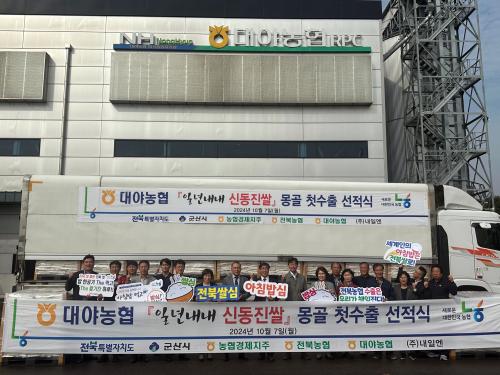 ±º»ê½Ã³ó¾÷±â¼ú¼¾ÅÍ(¼ÒÀå ä¿Õ±Õ, ÀÌÇÏ ¡®¼¾ÅÍ¡¯)´Â ´ë¾ß¸é¿¡¼ »ý»êÇÑ 360 ÅæÀÇ ½Åµ¿Áø ½ÒÀ» 90Åæ¾¿ ÃÑ 4ȸ Áß±¹À» °ÅÃÄ ¸ù°ñ·Î ¼öÃâÇÏ´Â °è¾àÀ» ü°áÇß´Ù°í ¹àÇûÀ¸¸ç, ù ¼öÃâ°ú ÇÔ²² ¼º°øÀûÀÎ ¼öÃâÀ» ±â³äÇÏ´Â ¼öÃâ ¼±Àû½ÄÀº ´ë¾ß³óÇù ¹Ì°îÁ¾ÇÕó¸®Àå¿¡¼ 20¸íÀÌ Âü¼®ÇÑ °¡¿îµ¥ ½Ç½ÃµÆ´Ù.