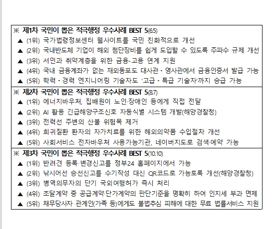 * ±¹¹«Á¶Á¤½ÇÀº Áß¾ÓÇàÁ¤±â°ü¿¡¼ °ø¸ðÇÑ Àû±ØÇàÁ¤ »ç·Ê Áß ±¹¹Îü°¨µµ, °úÁ¦³À̵µ µîÀ» Á¾ÇÕÀûÀ¸·Î °í·ÁÇÏ¿© ¿ì¼ö°úÁ¦ ¼±Á¤ ÈÄ ±¹¹Î ´ë»ó ¿Â¶óÀÎ ÅõÇ¥·Î ¡°¿ì¼ö°úÁ¦ Best 5¡± ¼±Á¤