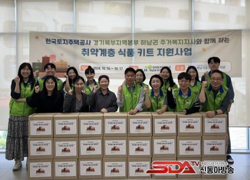 ½Äǰ ŰƮ¿¡´Â ±¹, ÅëÁ¶¸², Áï¼®½Äǰ µî ±âº»ÀûÀÎ ½Ä·áǰÀÌ Æ÷ÇԵǾî ÀÖÀ¸¸ç, Çѱ¹ÅäÁöÁÖÅðø»ç Çϳ²±ÇÁְź¹ÁöÁö»ç¿¡¼´Â ½Ä·áǰÀ» ±¸ÀÔÇÒ ¼ö ÀÖµµ·Ï 200¸¸¿ø »ó´çÀÇ »óǰ±ÇÀ» Àü´ÞÇϰí, Á÷¿øµéÀÌ Á÷Á¢ Áö¿ª ³» Ãë¾à°èÃþ 50°¡Á¤¿¡ Àü´ÞÇÒ ½Äǰ ŰƮ¸¦ Á¦ÀÛÇÏ¿© °¢ °¡Á¤¿¡ ¹æ¹®ÇÏ¿© ¹°Ç°À» Àü´ÞÇÏ¿´´Ù.