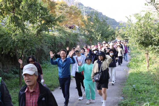 À̹ø Çà»ç´Â °È±â µü ÁÁÀº ³¯¾¾, ÇüÇü»ö»ö ´ÜdzÀÌ ¹°µå´Â ½Ã±â¿¡ ¡®µµ¼°ü °¡´Â ±æ¡¯À» °¡Á·¡¤ÁöÀΰú ÇÔ²² °ÉÀ¸¸ç ¡®ÀÏ»ó ¼Ó °È±â¡¯¿Í ¡®ÀÏ»ó ¼Ó Àι®¡¯À» ½ÇõÇϱâ À§ÇØ ¸¶·ÃµÆ´Ù. Çà»ç¿¡´Â È«½Â¹Ì ±¤ÁÖ¡¤Àü³²Áö¹æº´¹«Ã» ûÀå°ú Á÷¿øµéµµ Âü¿©ÇØ Àǹ̸¦ ´õÇß´Ù.