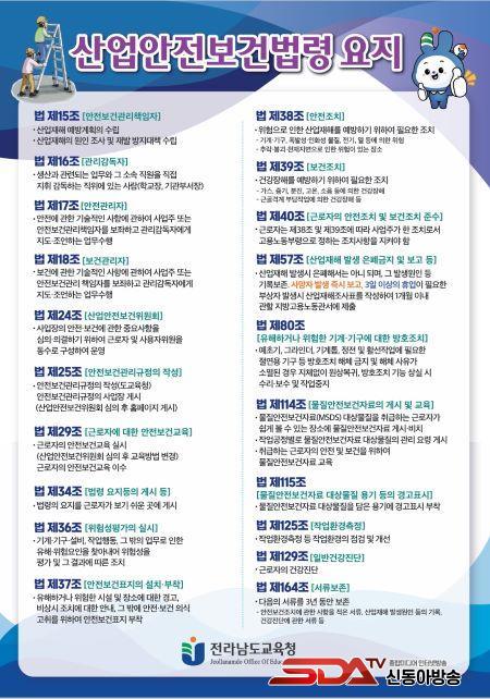 »ê¾÷¾ÈÀüº¸°Ç¹ý·É ¿äÁö´Â »ê¾÷¾ÈÀüº¸°Ç¹ý·É¿¡ µû¶ó Çб³(±â°ü)¿¡¼ ±Ù·ÎÀÚ°¡ ÁؼöÇØ¾ß ÇÒ »ê¾÷¾ÈÀüº¸°Ç¹ý ÁÖ¿ä ³»¿ëÀ» ´ã°í ÀÖ´Ù. ¾ÈÀüº¸°Ç ´ëÃ¥, ±â±¸ »ç¿ë ¹× °ü¸® ¹æ¹ý, À§Çè ¿äÀÎ ÆÄ¾Ç µîÀ» ´ãÀº ¾ÈÀü¼öÄ¢ Æ÷½ºÅÍ´Â ±Ù·ÎÀÚ°¡ ½±°Ô º¼ ¼ö ÀÖ´Â ½Ã¼³°ú Àå¼Ò¿¡ °Ô½ÃÇϵµ·Ï Çß´Ù.