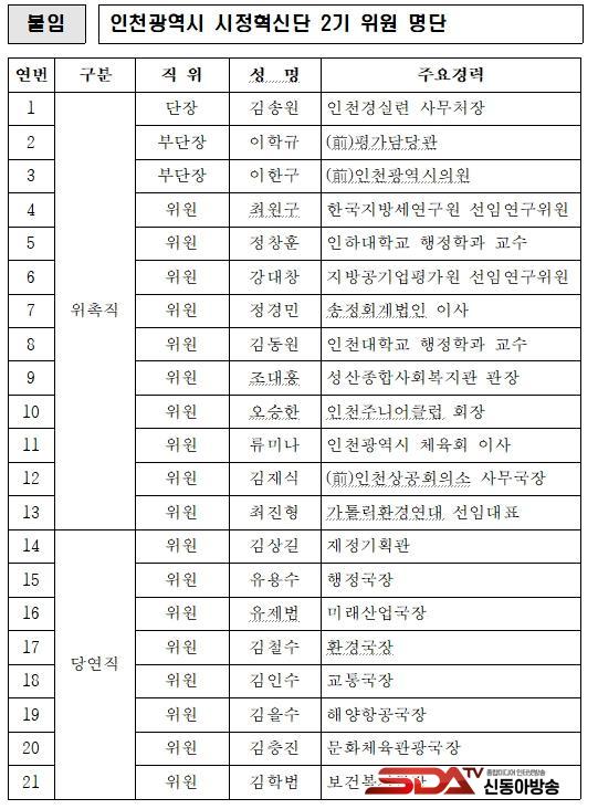 ½ÃÁ¤Çõ½Å´ÜÀº ¡®½Ã¹ÎÀÌ ÇູÇÑ ¼¼°è ÃÊÀÏ·ù µµ½Ã ÀÎõ¡¯ °Ç¼³À» ¸ñÇ¥·Î ½ÃÁ¤Çõ½ÅÀÇ ±âº» ¹æÇâ ¼³Á¤, Á¤Ã¥ ¹ß±¼ ¹× Á¦µµ°³¼±, Á¤Ã¥ ÀÌÇà »óȲ Á¡°Ë ¹× Æò°¡ µîÀÇ ÀÚ¹®¿ªÇÒÀ» ¼öÇàÇÏ´Â À§¿øÈ¸·Î, À̹ø¿¡ À§ÃËµÈ ½ÃÁ¤Çõ½Å´Ü 2±â´Â ±è¼Û¿ø ´ÜÀåÀ» ºñ·ÔÇÑ 21¸íÀÇ À§¿øÀ¸·Î ±¸¼ºµÆ´Ù.