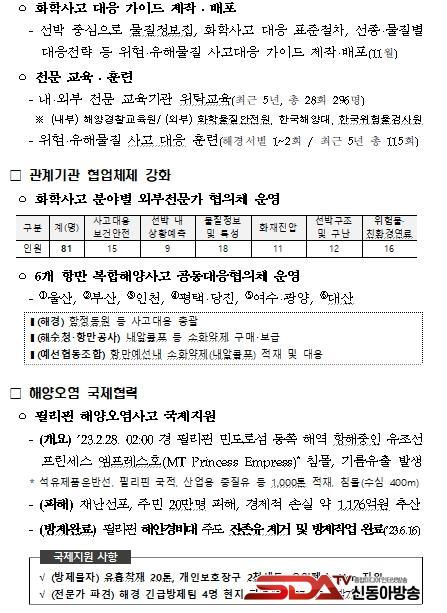 ¶ÇÇÑ, ÇØ¾ç°æÂûûÀº ÇØ¾ç¿À¿°»ç°í ´ëÀÀ»Ó¸¸ ¾Æ´Ï¶ó ¼±¹Ú¤ýÇØ¾ç½Ã¼³¿¡ ´ëÇÑ ÁöµµÁ¡°Ë°ú ÁÖ±âÀûÀÎ ÇפýÆ÷±¸ ¼øÂûÀ» ÅëÇÑ °¨½ÃȰµ¿ µî ´Ù¾çÇÑ ÇØ¾ç¿À¿°À» ¿¹¹æÁ¤Ã¥°ú ÇØ¾çȯ°æ ¼ôÆû¤ýÆ÷½ºÅÍ °ø¸ðÀüÀ» °³ÃÖÇÏ´Â µî ÇØ¾çȯ°æ º¸ÀüÀ» À§ÇÑ ´Ù¾çÇÑ Ä·ÆäÀÎÀ» ÃßÁøÇϰí ÀÖ´Ù.