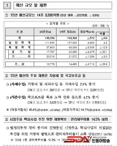 ³»³âµµ º»¿¹»ê¾ÈÀº 2024³â º»¿¹»ê(15Á¶ 368¾ï ¿ø) ´ëºñ 972¾ï ¿ø(0.6%)ÀÌ °¨¼ÒÇÑ ±Ô¸ðÀÌ´Ù.