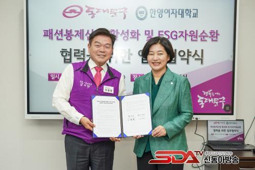 À̹ø Çù¾àÀ» ÅëÇØ µ¿´ë¹®±¸¿Í ÇѾ翩´ë´Â ÆÐ¼ÇºÀÁ¦»ê¾÷ Ȱ¼ºÈ¸¦ À§ÇÑ Áö»êÇÐ Çù·Â °Å¹ö³Í½º¸¦ ±¸ÃàÇÏ°í ºÀÁ¦ Àη µ¥ÀÌÅÍÈ ±â¹Ý Á¶¼º, â¾÷ µðÀÚÀÌ³Ê À°¼º Áö¿ø, ģȯ°æ ¼ÒÀç ¹× Áö¼Ó °¡´ÉÇÑ »ê¾÷ ¿¬±¸ °³¹ß µîÀ» ÇÔ²² ÃßÁøÇϱâ·Î Çß´Ù. À̸¦ ÅëÇØ »êÇÐ Çù·ÂÀ» ÅëÇØ Áö¿ª»çȸ ¹ßÀü¿¡ ±â¿©Çϰڴٴ ¶æÀ» ¸ð¾Ò´Ù.
