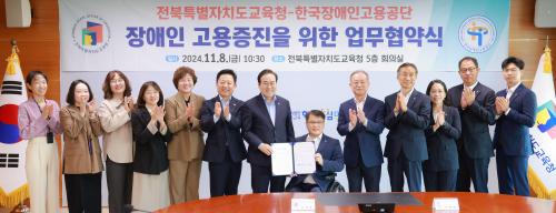 ¼°Å¼® ±³À°°¨°ú ÀÌÁ¾¼º ÀÌ»çÀåÀº 8ÀÏ ±³À°Ã» 5Ãþ ȸÀǽǿ¡¼ ¾ç ±â°ü °ü°èÀÚ 10¿© ¸íÀÌ Âü¼®ÇÑ °¡¿îµ¥ ¡®Àå¾ÖÀÎ °í¿ëÁõÁøÀ» À§ÇÑ ¾÷¹«Çù¾à¡¯À» ü°áÇß´Ù.