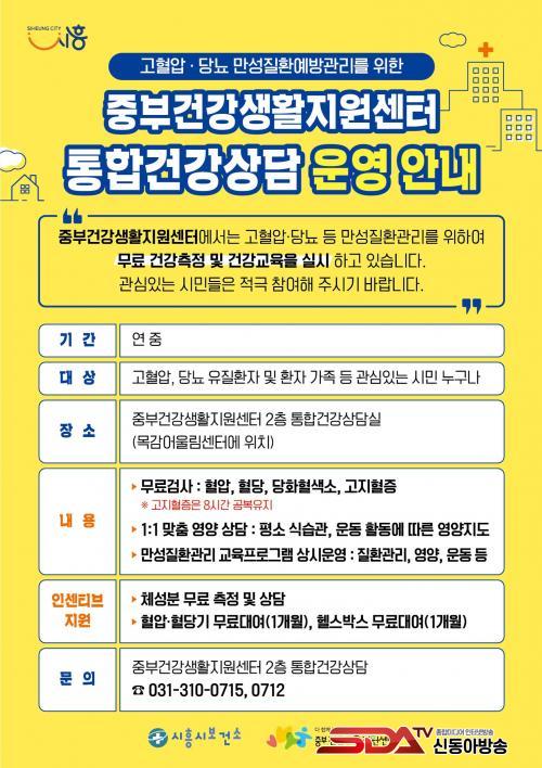 [½Åµ¿¾Æ¹æ¼Û ½ÃÈï½Ã=À̽ŵ¿±âÀÚ] ½ÃÈï½Ã Áߺΰǰ­»ýȰÁö¿ø¼¾ÅÍ´Â ½É³úÇ÷°ü Áúȯ¿¡ °ü½É ÀÖ´Â ÁßºÎ±Ç ½Ã¹ÎÀ» ´ë»óÀ¸·Î °Ç°­ÃøÁ¤¤ý»ó´ã°ú °Ç°­±³À°À» ¿¬Áß ¹«·á·Î Á¦°øÇϰí ÀÖ´Ù.