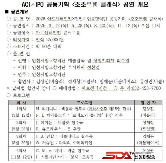 [½Åµ¿¾Æ¹æ¼Û ÀÎõ=À±¹Î½Ä±âÀÚ]¾ÆÆ®¼¾ÅÍÀÎõÀº ÀÎõ½Ã¸³±³Çâ¾Ç´Ü(ÀÌÇÏ ¡®ÀÎõ½ÃÇ⡯)°ú °øµ¿±âȹÀ¸·Î ÆòÀÏ ¿ÀÀü 11½Ã¿¡ Áñ±â´Â Ŭ·¡½Ä ½Ã¸®Áî ¡´Á¶Á¶ðÄðÈ Å¬·¡½Ä>À» ¼±º¸ÀÎ´Ù°í ¹àÇû´Ù. º» °ø¿¬Àº 3¿ù 12ÀÏ Ã¹ °ø¿¬À» ½ÃÀÛÀ¸·Î ÃÑ 4ȸ¿¡ °ÉÃÄ ¾ÆÆ®¼¾ÅÍÀÎõ Äܼ­Æ®È¦¿¡¼­ ÁøÇàµÈ´Ù.