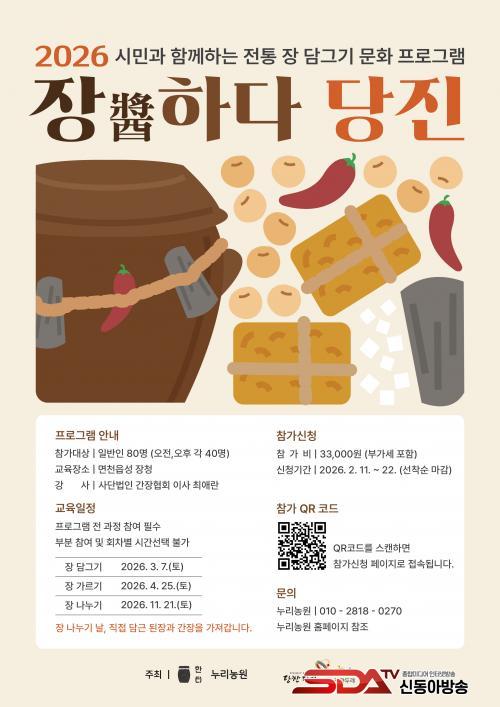 Âü°¡ ´ë»óÀº ÀüÅë Àå°ú À½½Ä ¹®È¿¡ °ü½É ÀÖ´Â ½Ã¹Î°ú ÀϹÝÀÎÀ¸·Î, Àå ´ã±×±â °æÇèÀÌ ¾ø´Â Ãʺ¸ÀÚµµ ½±°Ô Âü¿©ÇÒ ¼ö ÀÖµµ·Ï ±³À° °úÁ¤ÀÌ ±¸¼ºµÆ´Ù. ¸ðÁý ÀοøÀº ÃÑ 80¸íÀÌ¸ç ¼±Âø¼øÀ¸·Î ¸¶°¨µÈ´Ù.