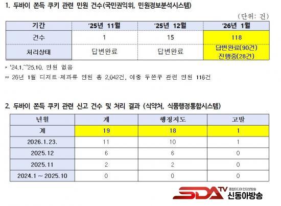½ÄǰÀǾàǰ¾ÈÀüó ½ÄǰÇàÁ¤ÅëÇսýºÅÛ¿¡¼­µµ À¯»çÇÑ È帧ÀÌ È®ÀεƴÙ. 2024³â 1¿ùºÎÅÍ 2025³â 10¿ù±îÁö µÎÂËÄí °ü·Ã ½Å°í¡¤Á¶Ä¡´Â 0°ÇÀ̾úÀ¸³ª, ¡ã2025³â 11¿ù 2°Ç, ¡ã12¿ù 6°Ç¿¡ ÀÌ¾î ¡ã2026³â 1¿ù 23ÀÏ ±âÁØ 11°Ç(ÇàÁ¤Áöµµ 10°Ç, °í¹ß 1°Ç)À¸·Î Áõ°¡Çß´Ù. ÀÌ¿¡ µû¶ó 2025³â 11¿ùºÎÅÍ 2026³â 1¿ù±îÁö 3°³¿ù°£ ÃÑ 19°Ç(ÇàÁ¤Áöµµ 18°Ç, °í¹ß 1°Ç)ÀÇ ÇàÁ¤Á¶Ä¡°¡ ÀÌ·ïÁ® ´Ü±â°£ ³» ¹Ýº¹ÀûÀÎ À§¹Ý »ç·Ê°¡ ¹ß»ýÇÑ °ÍÀ¸·Î ³ªÅ¸³µ´Ù.
