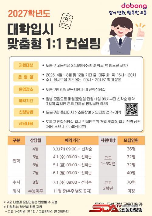 [½Åµ¿¾Æ¹æ¼Û µµºÀ±¸=À̽ŵ¿±âÀÚ] ¼­¿ï µµºÀ±¸°¡ Áö¿ª ³» °íµîÇлýÀ» ´ë»óÀ¸·Î '´ëÇÐÀԽà ¸ÂÃãÇü 1´ë1 ÄÁ¼³ÆÃ'À» ¿î¿µÇÑ´Ù.