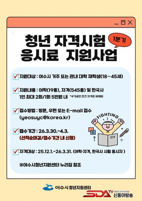 Áö¿ø ´ë»ó ½ÃÇèÀº 2026³â¿¡ ÀÀ½ÃÇÑ ¾îÇÐ 19Á¾(ÅäÀÍ µî)°ú ÀÚ°Ý 545Á¾(±¹°¡±â¼úÀڰݹý ½ÃÇà±ÔÄ¢¿¡ µû¸¥ ÀڰݽÃÇè), Çѱ¹»ç ½ÃÇèÀ̸ç, Áö³ÇØ 12¿ù¿¡ ÀÀ½ÃÇÑ ½ÃÇè(¾îÇС¤ÀÚ°Ý¡¤Çѱ¹»ç)¿¡ ´ëÇØ¼µµ ¼Ò±Þ Áö¿øÀÌ °¡´ÉÇÏ´Ù.