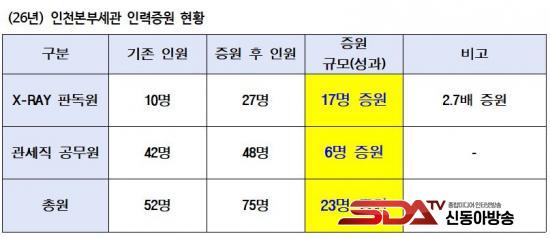 À̹ø Á÷Á¦ °³ÆíÀ¸·Î ÀÎõ¼¼°üÀÇ X-ray ÆÇµ¶ ¿ä¿øÀº ±âÁ¸ 10¸í¿¡¼ 27¸íÀ¸·Î 3¹è °¡±îÀÌ(17¸í) ´Ã¾î³µ°í, °ü¼¼Á÷ °ø¹«¿øµµ 6¸íÀÌ º¸°µÆ´Ù. À̷νá À°¾ÈÀ¸·Î È®ÀÎÇϱ⠾î·Á¿î Àº´Ð ¸¶¾à°ú À§ÇØ ¹°Ç°À» ³¡±îÁö ÃßÀûÇØ °É·¯³»´Â ¡®Ã¶º® °Ë¿ª¸Á¡¯ °¡µ¿ÀÌ °¡´ÉÇØÁú Àü¸ÁÀÌ´Ù.