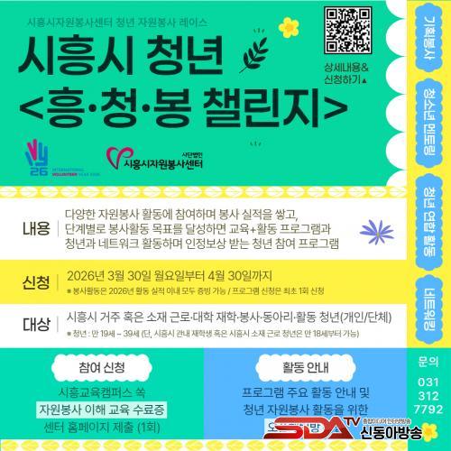 À̹ø ÇÁ·Î±×·¥Àº ºÀ»çȰµ¿°ú ÀÎÁ¤º¸»óÀ» °áÇÕÇÑ Âü¿©Çü ÀÚ¿øºÀ»ç ¸ðµ¨·Î, ½ÃÈï½Ã û³â(¸¸ 19¼¼~39¼¼)°ú °ü³» Ȱµ¿ û³âÀ» ´ë»óÀ¸·Î ÇÑ´Ù. °³ÀÎÀº ¹°·Ð û³â ´Üüµµ Âü¿©ÇÒ ¼ö ÀÖ´Ù.