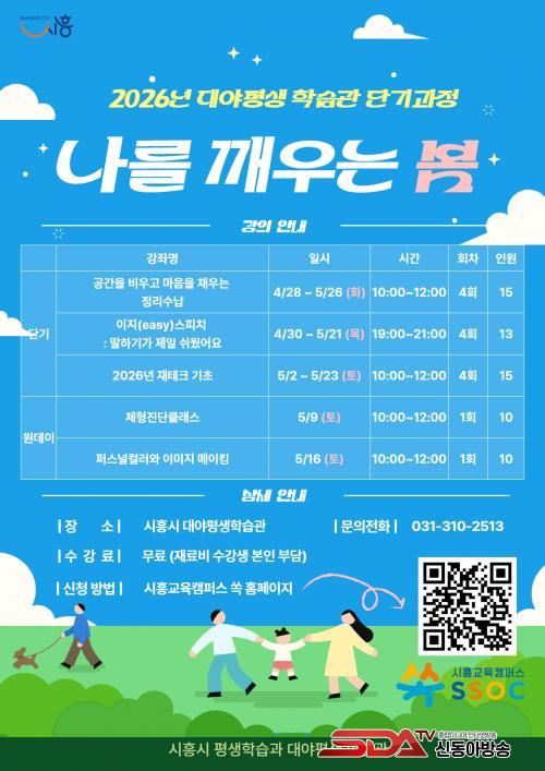 [½Åµ¿¾Æ¹æ¼Û ½ÃÈï½Ã=À̽ŵ¿±âÀÚ] ½ÃÈï½Ã ´ë¾ßÆò»ýÇнÀ°üÀº 4¿ù 6ÀϺÎÅÍ ¡®³ª¸¦ ±ú¿ì´Â º½¡¯À» ÁÖÁ¦·Î ÇÑ 2026³â ´Ü±â°úÁ¤ ¹× ¿øµ¥ÀÌ Å¬·¡½º Æò»ýÇнÀ ÇÁ·Î±×·¥ ¼ö°­»ý ¸ðÁýÀ» ½ÃÀÛÇÑ´Ù.
