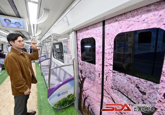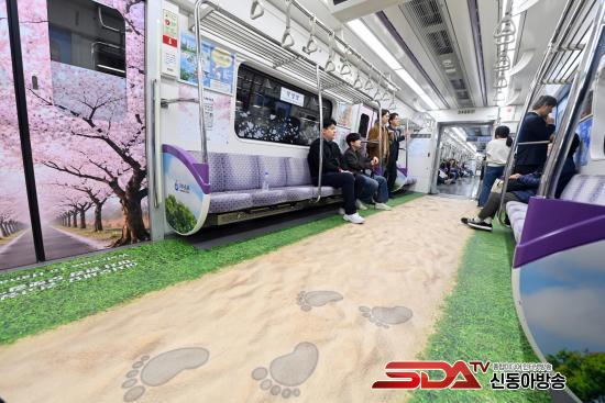 Çϳ²½Ã´Â º¢²É °³È±â¸¦ ¸Â¾Æ ÁöÇÏö 5È£¼± Àüµ¿Â÷ ³»ºÎ¸¦ Çϳ²ÀÇ ¾Æ¸§´Ù¿î ¸í¼Ò·Î °¡µæ ä¿î ¡®Çϳ² dz°æ¿Â÷¡¯¸¦ ¼±º¸ÀÌ¸ç ½Ã¹ÎµéÀÇ ÀÏ»ó¿¡ µû½ºÇÑ ¿Â±â¸¦ ´õÇϰí ÀÖ´Ù.