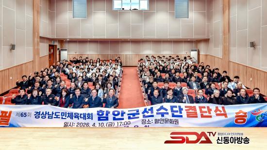 [½Åµ¿¾Æ¹æ¼Û °æ³²ÇÔ¾È=À̽ŵ¿±âÀÚ] ÇԾȱºÀº Áö³­ 10ÀÏ ÇԾȹ®È­¿ø ´ë°ø¿¬Àå¿¡¼­ Á¦65ȸ °æ³²µµ¹ÎüÀ°´ëȸ¿¡ Âü°¡ÇÏ´Â ¼±¼ö´ÜÀÇ °á´Ü½ÄÀ» °³ÃÖÇϰí, ´ëȸ ¼±ÀüÀ» À§ÇÑ ÈûÂù ÃâÁ¤ÀÇ ½Ã°£À» ¾Ë·È´Ù°í ¹àÇû´Ù.