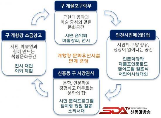 ¼Ò±Ýâ°í¸¦ ºñ·ÔÇØ Á¦¹°Æ÷±¸¶ôºÎ, ÀÎõ½Ã¹Î¾ÖÁý, ½ÅÈﵿ ±¸ ½ÃÀå°ü»ç µî °³Ç×Àå ÀÏ´ë¿¡ À§Ä¡ÇÑ 4´ë ±Ù´ë¹®ÈÀ¯»êÀ» ÇϳªÀÇ ¹®È µ¿¼±À¸·Î ¿«¾î, °¢ °ø°£ÀÇ ¿ª»çÀû Ư¼ºÀ» ¹Ý¿µÇÑ Æ¯È °ø°£À» Á¶¼ºÇϰí üÇèÇü ÄÜÅÙÃ÷¸¦ ¿î¿µÇÑ´Ù´Â ±¸»óÀÌ´Ù. À̸¦ ÅëÇØ °³Ç×ÀåÀ» ´Ü¼øÇÑ °ü±¤Áö¸¦ ³Ñ¾î ¿ª»ç¿Í ¿¹¼úÀ» ÇÔ²² üÇèÇÒ ¼ö ÀÖ´Â ÀÔüÀû ¹®È°ø°£À¸·Î ¹ßÀü½ÃÄÑ ³ª°¥ °èȹÀÌ´Ù.