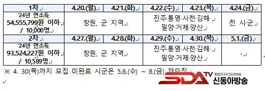 µµ´Â 4¿ù 22Àϰú 23ÀÏ ¾çÀϰ£ ÁøÁֽø¦ ºñ·ÔÇÑ 7°³ ½Ã¸¦ ´ë»óÀ¸·Î ¸ðÁýÀ» ÁøÇàÇϰí, ´ÙÀ½ ÁÖ¿¡´Â ¼Òµæ 9,352¸¸ ¿ø ÀÌÇÏ ±¸°£À» ´ë»óÀ¸·Î ÇÑ 2Â÷ ¸ðÁýµµ Â÷Áú ¾øÀÌ ÁøÇàÇÒ °èȹÀÌ´Ù.