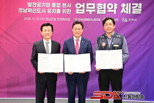 [½Åµ¿¾Æ¹æ¼Û °æ³²ÁøÁÖ=±è¸í¼ö±âÀÚ] ÁøÁֽô °æ»ó³²µµ, Çѱ¹³²µ¿¹ßÀü¢ß ³ëÁ¶¿Í ÇÔ²² 22ÀÏ ¹ßÀü°ø±â¾÷ ÅëÇÕ º»»çÀÇ °æ³²ÁøÁÖ Çõ½Åµµ½Ã À¯Ä¡¸¦ À§ÇÑ ¾÷¹«Çù¾à(MOU)À» ü°áÇß´Ù°í ¹àÇû´Ù.